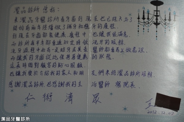 感謝潔品牙醫診所,也感謝我的主治醫師 楊院長